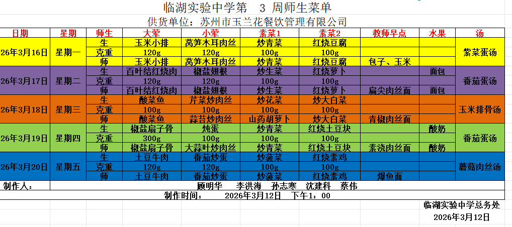 2025-2026第二学期第三周师生菜单